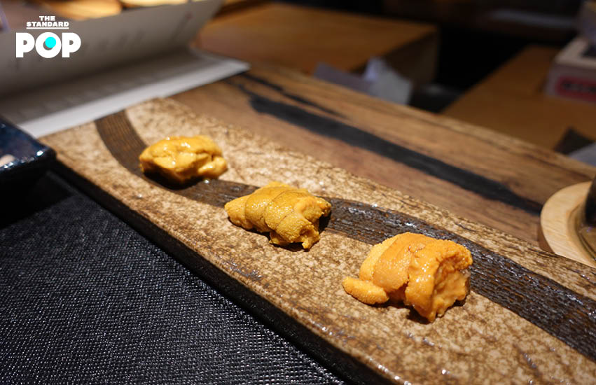 จานนี้น่าจะถูกใจหลายคน เพราะเป็นการให้เราลิ้มลองอูนิจากหลากหลายถิ่นฐานด้วยกันถึง 3 ตัว เริ่มด้วย คิวชู อาโอโมริ และฮอกไกโด ซึ่งทั้งหมดเป็นตัวผู้ เพียงเปิดกล่องแล้วตักเสิร์ฟเลย ลองดูว่าชอบรสชาติแบบไหนกัน