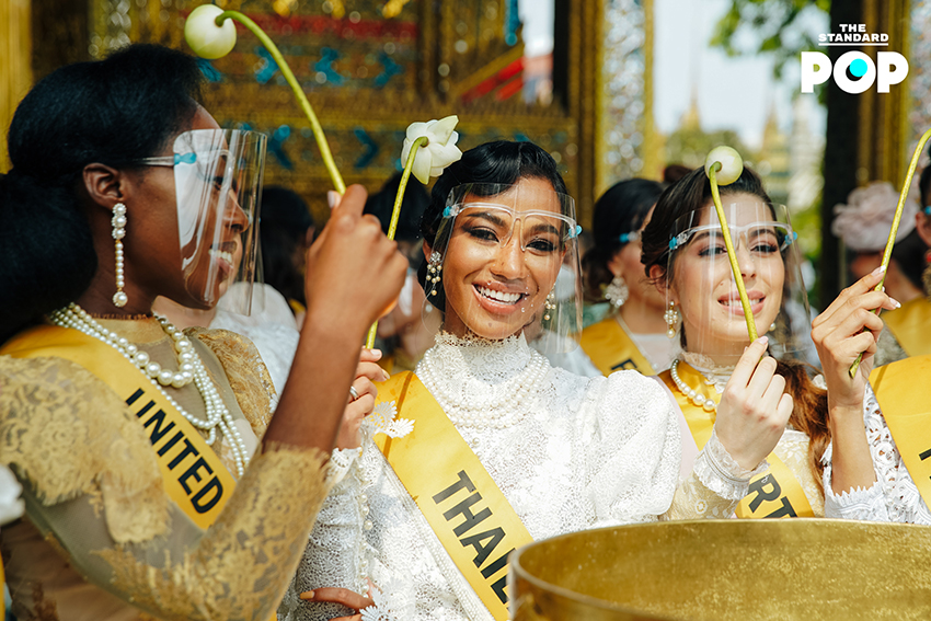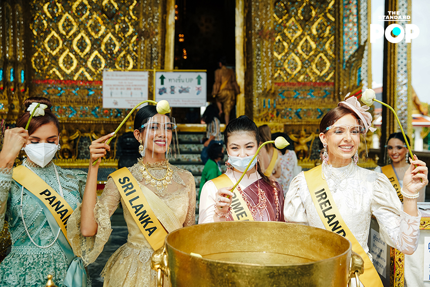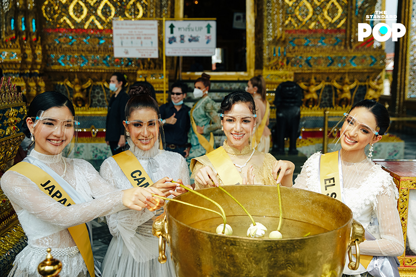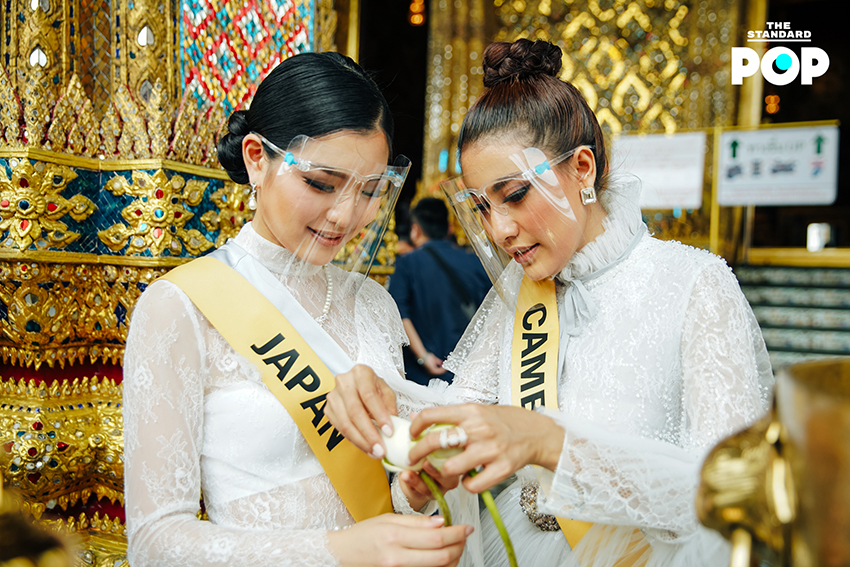 ท่ามกลางสถานการณ์โควิด-19 ผู้เข้าประกวดจาก 63 ประเทศที่ผ่านพ้นมาตรการกักตัว 14 วันตามกฎข้อบังคับของศูนย์บริหารสถานการณ์โควิด-19 (ศบค.) วันนี้จึงถือเป็นการเริ่มต้นกิจกรรมเก็บตัวของสาวงามมิสแกรนด์จากทั่วโลกในพื้นที่ของกรุงเทพมหานคร ประเดิมด้วยกิจกรรมแรกด้วยการเดินทางเข้าสักการะพระพุทธมหามณีรัตนปฏิมากร (พระแก้วมรกต) พระพุทธรูปคู่บ้านคู่เมืองของประเทศไทย ซึ่งประดิษฐานอยู่ภายในวัดพระศรีรัตนศาสดาราม (วัดพระแก้ว) ในพระบรมมหาราชวัง พร้อมวิทยากรประจำสำนักพระราชวังได้ให้ความรู้ด้านประวัติศาสตร์ระหว่างการเดินชมภายในบริเวณพระบรมมหาราชวัง ซึ่งเหล่าสาวงามได้ให้ความสนใจพร้อมถ่ายภาพเก็บเป็นที่ระลึก