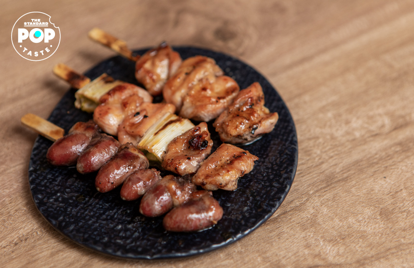 สะโพกไก่ย่าง (29 บาท) สะโพกไก่ย่างต้นหอม (35 บาท) และหัวใจไก่ย่าง (29 บาท)