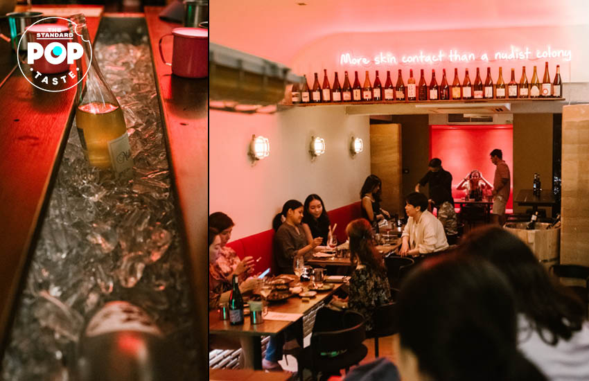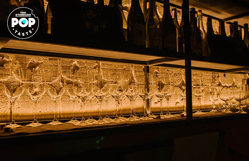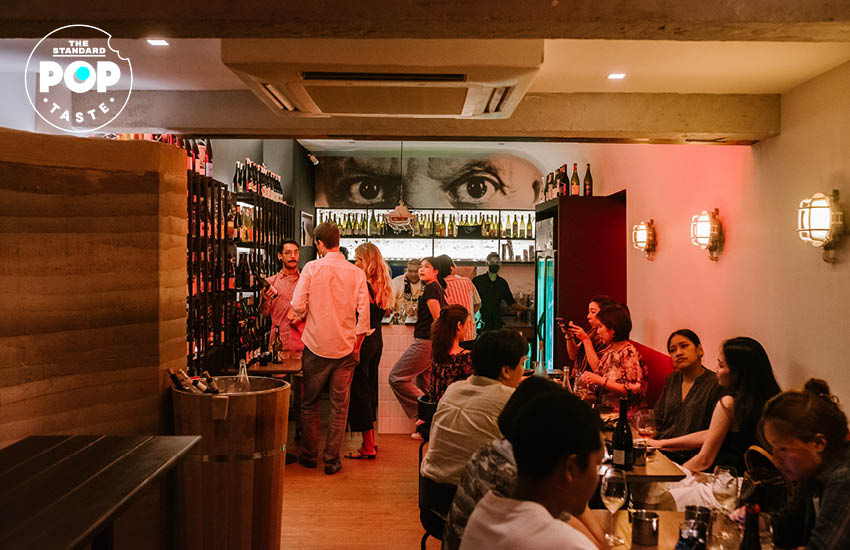 ไฟนีออนสีแดงช่วยเสริมมู้ดให้เข้ากับบรรยากาศสบายๆ ชิลๆ ยามค่ำคืน หากไม่ได้จองโต๊ะมาก่อนอาจจะต้องรอคิว เพราะที่นี่คลาคล่ำไปด้วยผู้คนตั้งแต่หัวค่ำ เราแนะนำให้นั่งโต๊ะทรงสูงด้านในสุด เพราะเป็นโต๊ะพิเศษที่มีรางน้ำแข็งสำหรับแช่ไวน์ผ่ากลางโต๊ะ มั่นใจได้เลยว่าไวน์ฉลากโปรดของคุณจะเย็นเจี๊ยบตลอดทั้งคืน