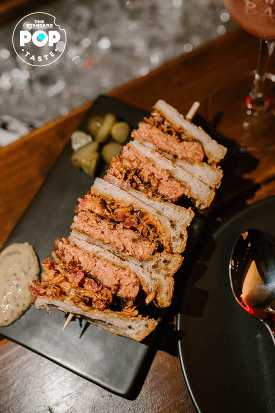 หนักขึ้นมาหน่อย W.A.P (Wet Ass Patty Melt) (380 บาท) จานนี้หากไม่บอกก็แทบไม่รู้ว่าเป็นเมนูวีแกน เนื้อที่เห็นนั้นคือ Beyond Meat โปรตีนทางเลือกสำหรับสายวีแกนและมังสวิรัติ เสริมรสด้วยถั่วลูกไก่ กระเทียมดำ หอมทอด ผักดอง และมาโย อร่อยแบบลืม Patty Melt แบบปกติได้เลย