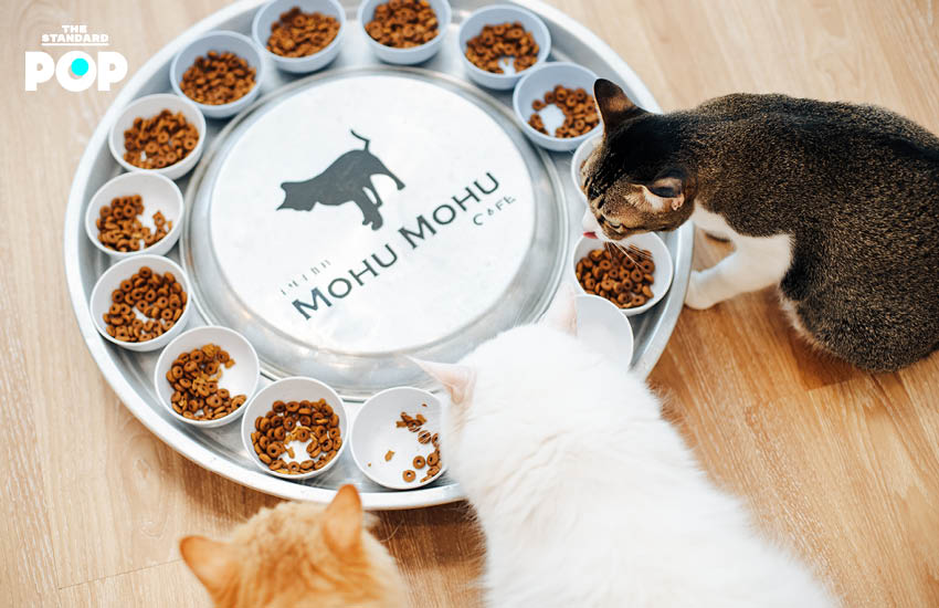 Mohu Mohu Cafe เป็นคาเฟ่แมวเล็กๆ กับแนวคิด ‘อยากให้ทั้งคนและแมวมีความสุข’ คาเฟ่แห่งนี้เพิ่งย้ายจากย่านลาดพร้าวมาสร้างบ้านใหม่ที่ย่านสี่พระยา เดินทางง่ายด้วย MRT สถานีสามย่าน และ BTS สถานีช่องนนทรี คาเฟ่แมวแห่งนี้มีแมวทั้งหมด 16 ตัว แมวเหล่านี้เคยเป็นแมวจรจัดจากข้างถนน วัด หรือสวนสาธารณะ ที่เจ้าของคาเฟ่ชาวญี่ปุ่นรับมาดูแล ฉีดวัคซีน ถ่ายพยาธิ และมอบความสุขให้กับพวกมัน และเมื่อพวกมันพร้อมที่จะส่งต่อความสุขให้กับลูกค้า ก็จะได้รับการแต่งตั้งให้เป็นสตาฟฟ์ประจำร้าน และถ้าคุณมีโอกาสได้แวะไป เราแนะนำให้คุณลองชิม ‘ข้าวหน้าไก่’ และ ‘ข้าวผัดญี่ปุ่น’ เพราะเมนูอาหารบ้านๆ สไตล์ญี่ปุ่นในร้านนี้เป็นเมนูจากฝีมือเจ้าของร้านชาวญี่ปุ่น รับรองว่าได้รสชาติแบบญี่ปุ่นแท้ๆ และอย่าลืมสั่ง ‘ช็อกโกแลตเย็น’ เมนูน้ำสุดน่ารักที่มีรูปหน้าเจ้าแมวเหมียวที่วาดด้วยซอสช็อกโกแลตอยู่บนแก้ว
