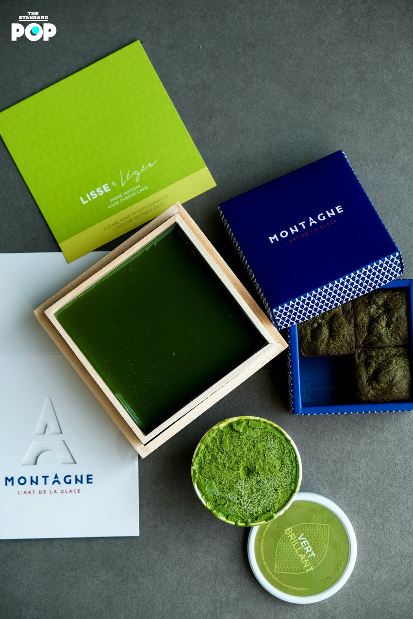 เซ็ตขนมและไอศกรีมในไลน์มัทฉะของร้าน Montagne