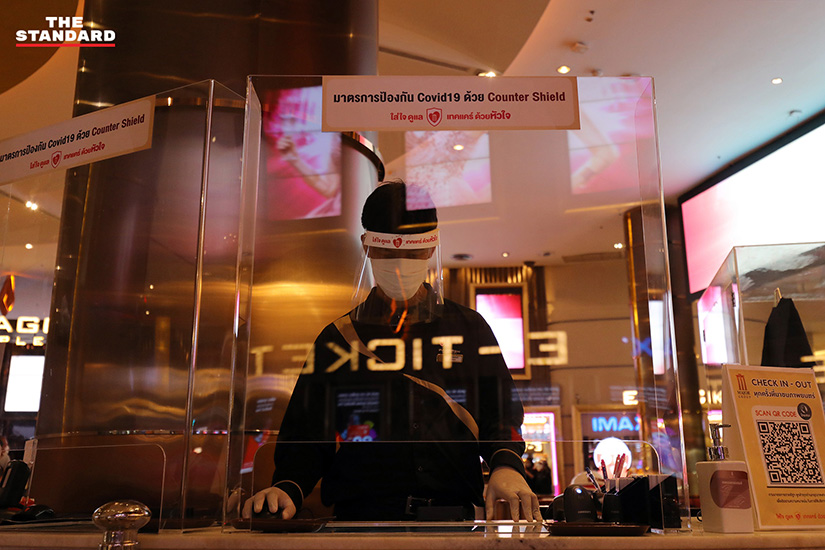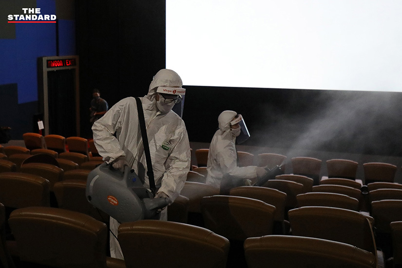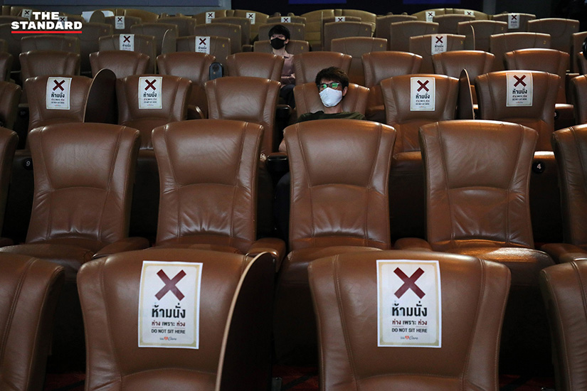 หลายคนอาจไม่เห็นภาพว่าการเว้นที่นั่งนั้นเป็นอย่างไร วันนี้ช่างภาพ THE STANDARD ได้เข้าไปเก็บภาพในพารากอน ซีนีเพล็กซ์ ซึ่งเป็นโรงภาพยนตร์ในเครือเมเจอร์ ซีนีเพล็กซ์ ที่ได้มีการสาธิตให้ดูว่าการนั่งดูภาพยนตร์แบบ Social Distancing นั้นเป็นอย่างไร