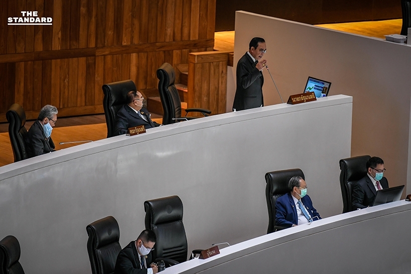 โดยก่อนการลงมติ พล.อ. ประยุทธ์ จันทร์โอชา นายกรัฐมนตรี และรัฐมนตรีว่าการกระทรวงกลาโหม ได้ลุกขึ้นชี้แจง ยืนยันรัฐบาลได้พยายามดำเนินมาตรการเพื่อลดผลกระทบของประชาชนทุกกลุ่มในประเทศ จากมาตรการควบคุมการแพร่ระบาดของโรคโควิด-19 ขออย่าเพียงแต่ดู พ.ร.ก. กู้เงิน เพราะที่ผ่านมารัฐบาลได้ดำเนินการตามการบริหารราชการตามปกติตามการใช้จ่ายงบประมาณรายจ่ายประจำปี 2563 ทั้งการดูแล เยียวยา ชดเชย รวมทั้งมาตรการลดผลกระทบ ทั้งมาตรการการเงิน การคลัง งบประมาณ