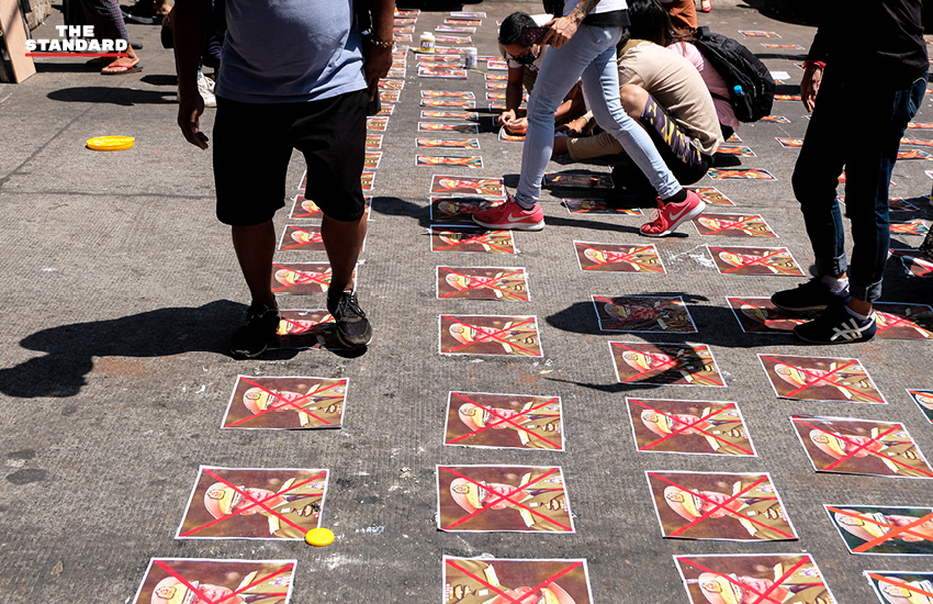ติดภาพใบหน้าของ พล.อ. อาวุโส มิน อ่อง หล่าย ผู้บัญชาการทหารสูงสุดกองทัพเมียนมาและผู้นำรัฐประหารไว้บนพื้นถนน เพื่อชะลอและบล็อกการเคลื่อนตัวของกองกำลังทหารและเจ้าหน้าที่ตำรวจ