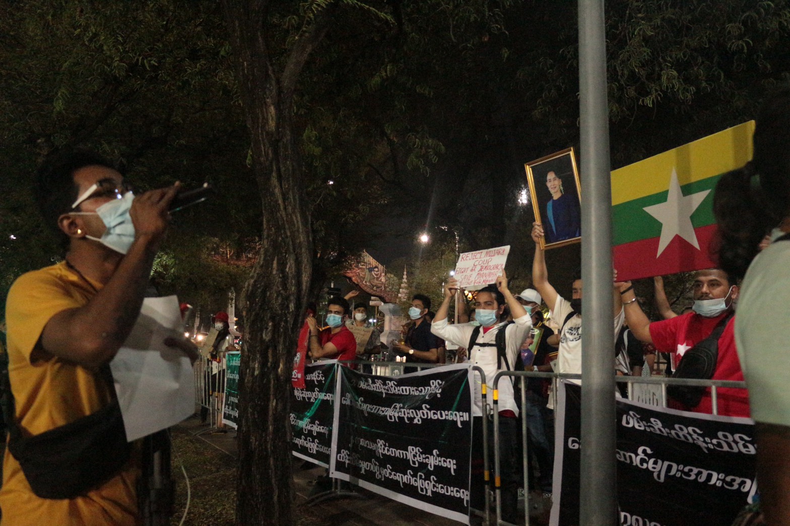 นอกจากนี้ยังได้ทํากิจกรรมร้องเพลงเป็นภาษาเมียนมา และร่วมกันตะโกนเป็นภาษาเมียนมา เพื่อแสดงออกถึงการต่อต้านการรัฐประหารในประเทศเมียนมา รวมถึงเรียกร้องให้มีการปล่อยตัว ออง ซาน ซูจี ก่อนที่จะเสร็จสิ้นกิจกรรมในเวลา 20.30 น.