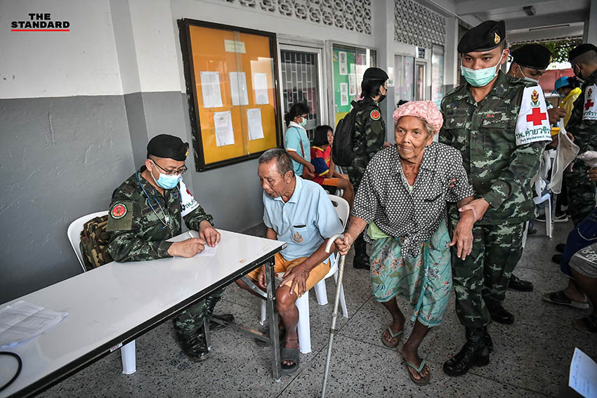สำหรับอาหารและน้ำดื่ม ภาคส่วนต่างๆ มีการส่งอาหารและน้ำดื่มมาสนับสนุนอย่างไม่ขาดสาย พร้อมทั้งมีหน่วยแพทย์จากหน่วยงานต่างๆ ที่เข้ามาผัดเปลี่ยนหมุนเวียนเข้ามาตรวจเยี่ยมผู้พักพิง ที่อาจมีอาการเจ็บไข้ต่างๆ เบื้องต้น หรือผู้ที่มีโรคประจำตัวต้องรับประทานยาต่อเนื่อง