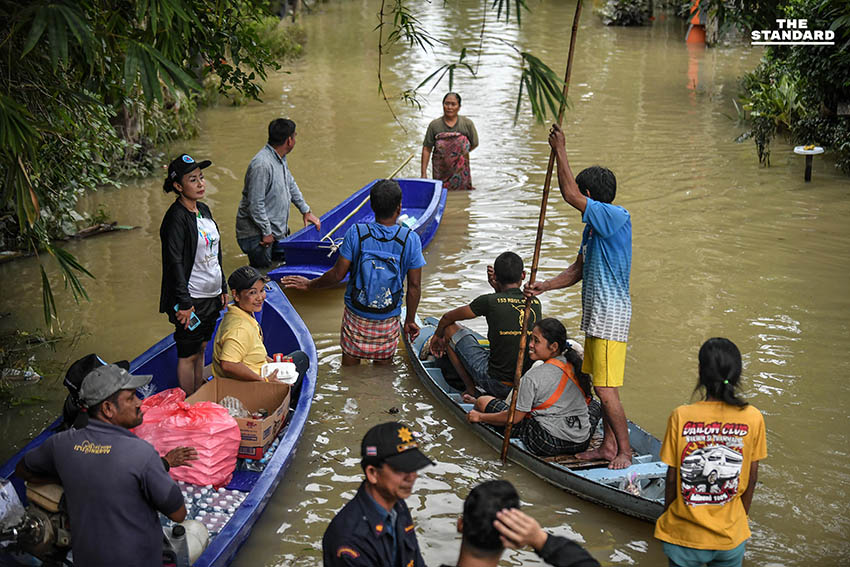 วันนี้ (4 ธันวาคม) THE STANDARD ลงพื้นที่เกาะติดสถานการณ์ #น้ำท่วมนครศรีธรรมราช ที่บ้านท่าลาด ตำบลท่าทราย อำเภอเมืองนครศรีธรรมราช โดยพบกับชาวบ้านที่สัญจรไปมาโดยเรือ เนื่องจากพื้นที่แห่งนี้เป็นพื้นที่ที่มีน้ำท่วมขังมาอย่างต่อเนื่องหลายวัน และบางช่วงก็มีน้ำขึ้นสูงเกือบ 2 เมตร