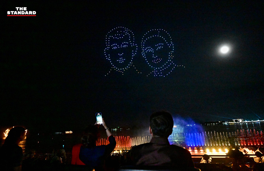 จากนั้น นายกรัฐมนตรีได้ร่วมเปิดงานอย่างเป็นทางการ ก่อนรับชมการแสดงโดรนแปรอักษร และรูปภาพซึ่งในจังหวะหนึ่งได้ปรากฏภาพพระบรมฉายาลักษณ์ พระบาทสมเด็จพระเจ้าอยู่หัว และสมเด็จพระบรมราชินี โดยอนุทินได้ยกมือไหว้เหนือหัว