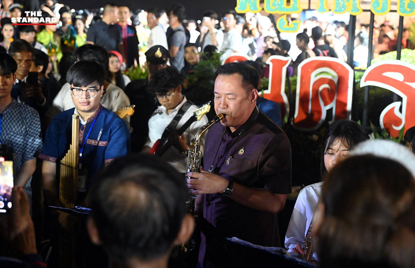 จากนั้นอนุทิน เดินมายังลานพญานาค โดยระหว่างเดินได้มีประชาชนเข้ามาทักทาย ขอสวมกอด และขอถ่ายภาพด้วย โดยอนุทินยังได้ร่วมวงเป่าแซ็กโซโฟนกับนักเรียนที่มาร่วมกิจกรรม โดยเป่าเพลง ‘สดุดีจอมราชา’