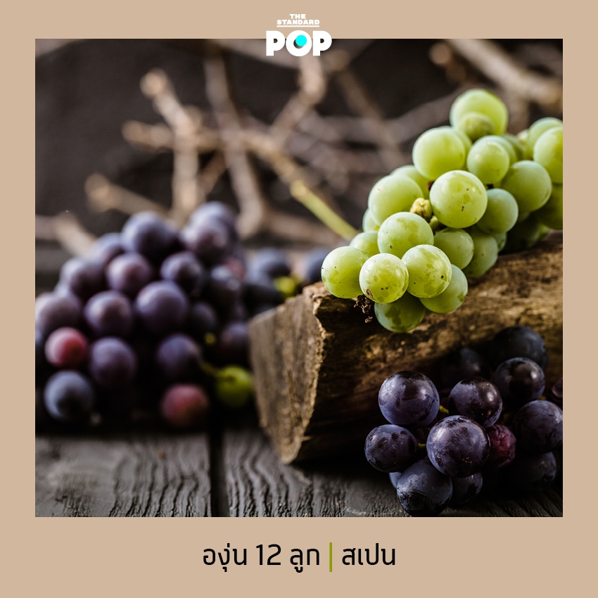 ที่มาของการกินองุ่นเฉลิมฉลองรับปีใหม่เริ่มต้นมาหลายร้อยปี เนื่องจากเป็นช่วงเก็บเกี่ยวองุ่นได้มากในช่วงสิ้นปี กษัตริย์ผู้ครองสเปนจึงพระราชทานองุ่นเป็นของขวัญแจกจ่ายให้ประชาชนได้กินกันในช่วงปีใหม่ ปฏิบัติเป็นขนบจนกลายเป็นธรรมเนียม ในคืนสิ้นปี ชาวสเปนจะกินองุ่น 12 ลูกเพื่อเรียกความโชคดี โดยเริ่มกินลูกแรกเมื่อนาฬิกาตีครั้งที่หนึ่ง ตี 1 ครั้ง 1 วินาที ก็เอาองุ่นใส่ปากไป 1 ผล ไล่เรียงไปจนครบ 12 ลูก องุ่นแต่ละลูกเปรียบได้กับ 1 เดือนของปี องุ่น 12 ลูกจึงหมายถึงเดือน 12 เดือน เชื่อว่าหากกินองุ่นครบได้ทันเวลาที่นาฬิกาตีครบ 12 ครั้งจะมีแต่โชคลาภ ไร้เคราะห์ภัย