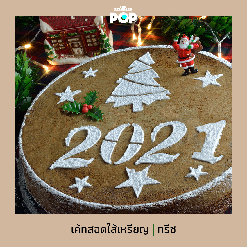 สำหรับชาวกรีก อาหารที่นิยมนำมาสังสรรค์ร่วมกับเมนูอื่นๆ ก่อนขึ้นปีใหม่คือ เค้กรสโปรดสอดไส้ด้วยเหรียญเงินที่เรียกว่า St. Basil’s Cake เพื่อรำลึกถึงนักบุญบาซิล ผู้เปี่ยมเมตตาต่อคนยากไร้ และเสียชีวิตลงในวันที่ 1 มกราคม ชาวกรีกเชื่อว่าผู้ใดกินเค้กก้อนนั้นแล้วเจอเหรียญเงินจะโชคดีตลอดทั้งปี