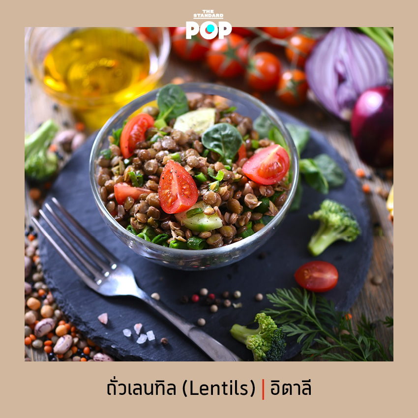 เลนทิล เป็นเมล็ดถั่วมีลักษณะกลมๆ แบนๆ มีหลายสี เช่น น้ำตาล เขียว แดง และเหลือง มีสารอาหารที่เป็นประโยชน์มาก ช่วยในเรื่องความแข็งแรงของกระดูก และปรับสมดุลฮอร์โมนในวัยทอง คนอิตาเลียนชอบกินถั่วเลนทิลเป็นอาหารมงคลปีใหม่ เพราะมีรูปร่างคล้ายเหรียญเงิน เชื่อกันว่าใครกินจะมีโชคและเงินทองไหลมาตลอดทั้งปี