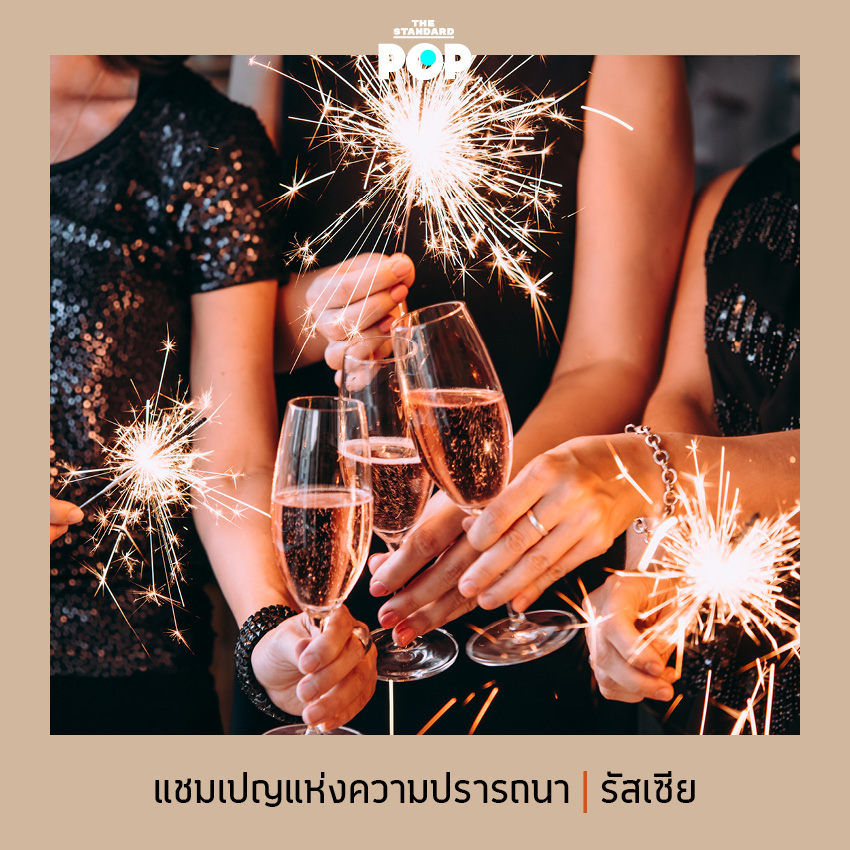 นี่อาจเป็นอาหารปีใหม่ที่แปลกแหวกแนวจนเราแอบคิดว่า เอ๊ะ! เขาทำกันจริงๆ หรือ? อาหารบนโต๊ะเฉลิมฉลองของคนรัสเซียนั้นคล้ายกับคนยุโรปทั่วไป แต่จะมีขั้นตอนหนึ่งที่พิเศษมาก คือ การดื่มแชมเปญแห่งความปรารถนาในช่วงข้ามปี พอใกล้ช่วงเวลานับถอยหลัง ชาวรัสเซียจะเขียนความปรารถนาที่อยากให้เป็นจริงในกระดาษ หลังจากนั้นจึงเปิดแชมเปญ รินลงแก้ว หย่อนความปรารถนาลงในแก้ว และ Cheer! ดื่มมันลงไป