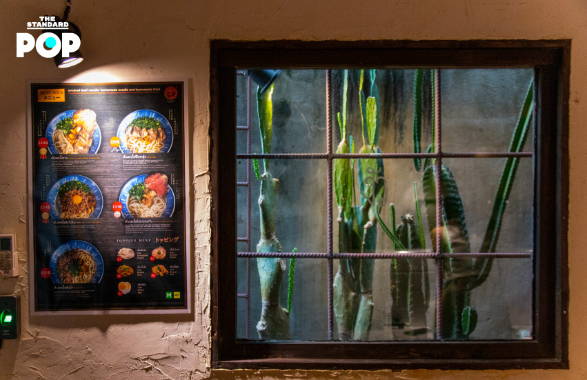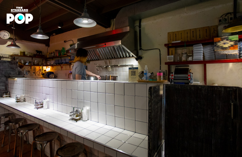ร้านมีทั้งหมดสองชั้น ชั้นแรกจะเป็นครัวเปิดและบาร์คล้ายกับร้านราเมนที่ญี่ปุ่น ที่น็อตสามารถคุยกับลูกค้าได้หลังจากลวกเส้นและเตรียมอาหารเสร็จ ส่วนชั้นบนจะเป็นบรรยากาศมืดๆ กับไฟสีแดงสลัวๆ บันไดทางขึ้นชั้นสองจะซ่อนอยู่หลังประตูไม้อีกบานสุดทางเดินร้าน น็อตเล่าว่าดีไซน์ร้านนั้นเป็นการเขียนแบบกันเอง ผสมปูนสร้างกันเองเลย