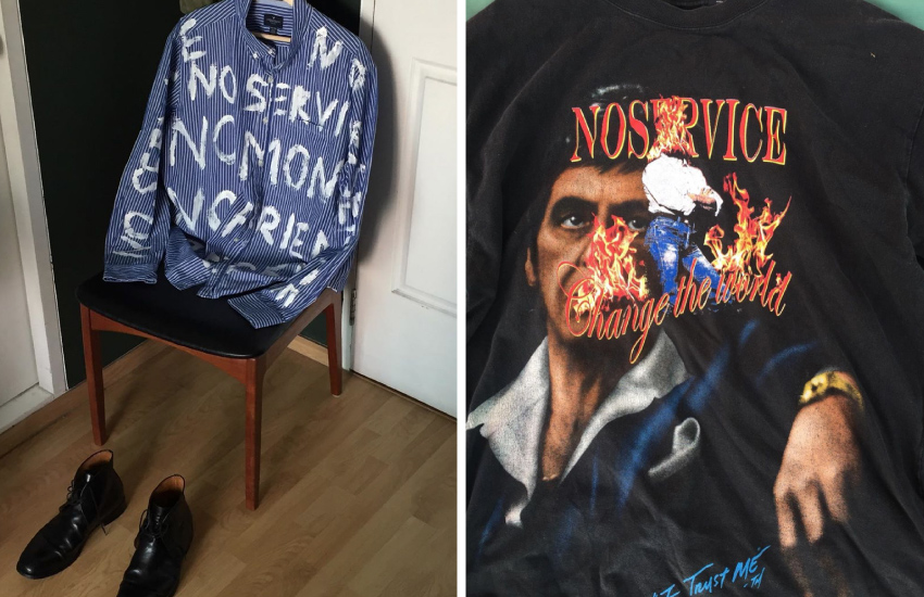 ผลงานที่ทำขึ้นจากเสื้อผ้ามือสองของ No Service Service (เครดิตภาพจาก @noserviceservice / Instagram)