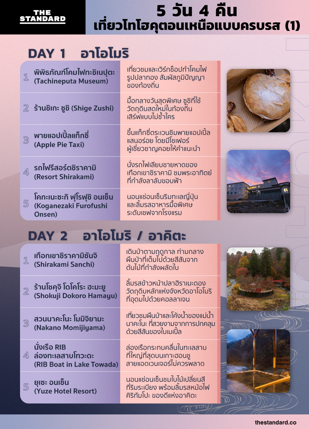 จะเห็นได้ว่าภูมิภาคโทโฮคุตอนเหนือเป็นอีกโซนหนึ่งในญี่ปุ่นที่มีทิวทัศน์ทางธรรมชาติที่โดดเด่นและสวยงามมากๆ ใครเป็นสายชอบท่องเที่ยวภูเขา เดินป่า แช่อนเซ็น หรือมองหาการพักผ่อนแบบเหนือระดับ ไม่ซ้ำใคร และหลงรักในการสัมผัสวิถีชีวิตของคนในท้องถิ่น การท่องเที่ยวที่อาโอโมริ อิวาเตะ และอาคิตะ หรือ 3 จังหวัดในตอนเหนือของภูมิภาคโทโฮคุ จะเป็นทริปที่ช่วยให้คุณได้ใช้เวลาแห่งความสุขอย่างคุ้มค่า สมกับที่รอคอยกันมานานกว่าสองปี คนรักญี่ปุ่นต้องไปให้ได้สักครั้งในชีวิต