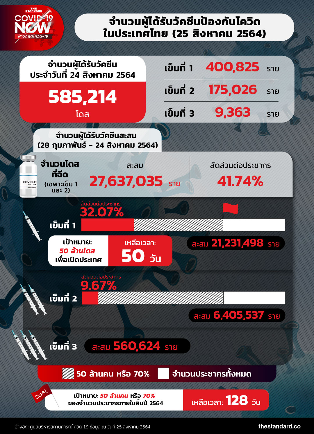 จำนวนผู้ได้รับวัคซีนโควิดในประเทศไทย (25 สิงหาคม 2564)