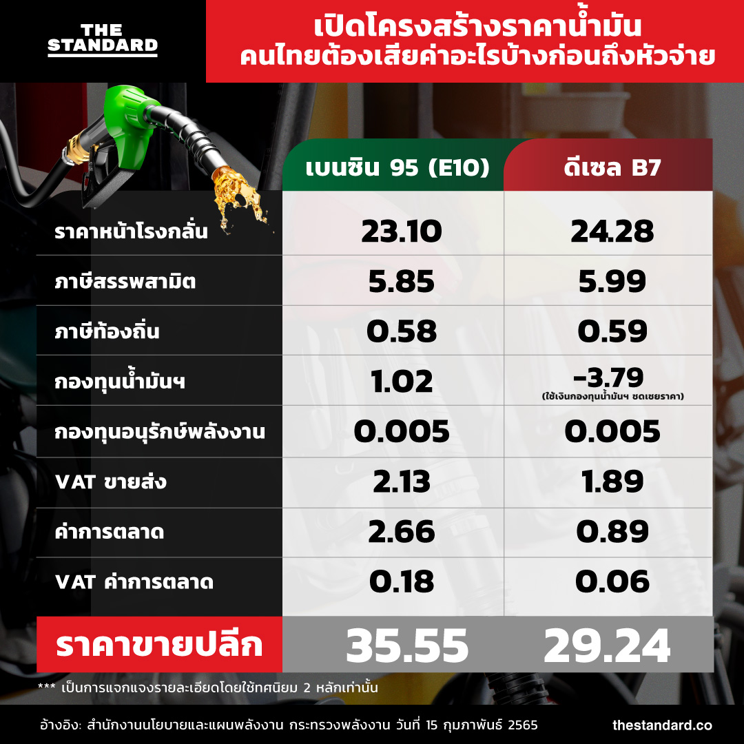 THE STANDARD เปิดโครงสร้างราคาน้ำมันไทย จากหน้าโรงกลั่นก่อนถึงหัวจ่าย คนไทยต้องจ่ายค่าอะไรบ้างในราคาน้ำมัน
