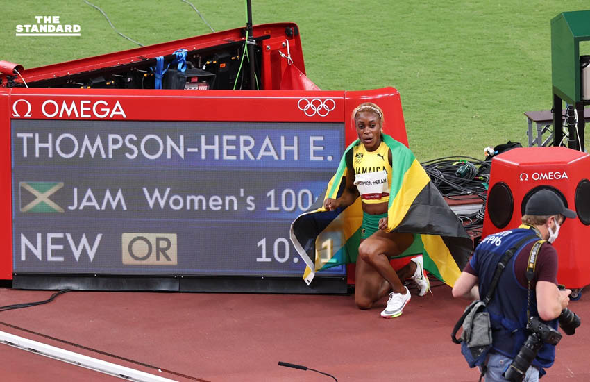 ลมกรดสาวจาเมกาสร้างผลงานลั่นโลกเข้าเส้นชัยในอันดับ 1-3 ในการแข่งขันวิ่ง 100 เมตรหญิง โดย เอเลน ธอมป์สัน-เฮราห์ เป็นผู้คว้าเหรียญทองไปครองโดยทุบสถิติโอลิมปิกเกมส์ด้วย