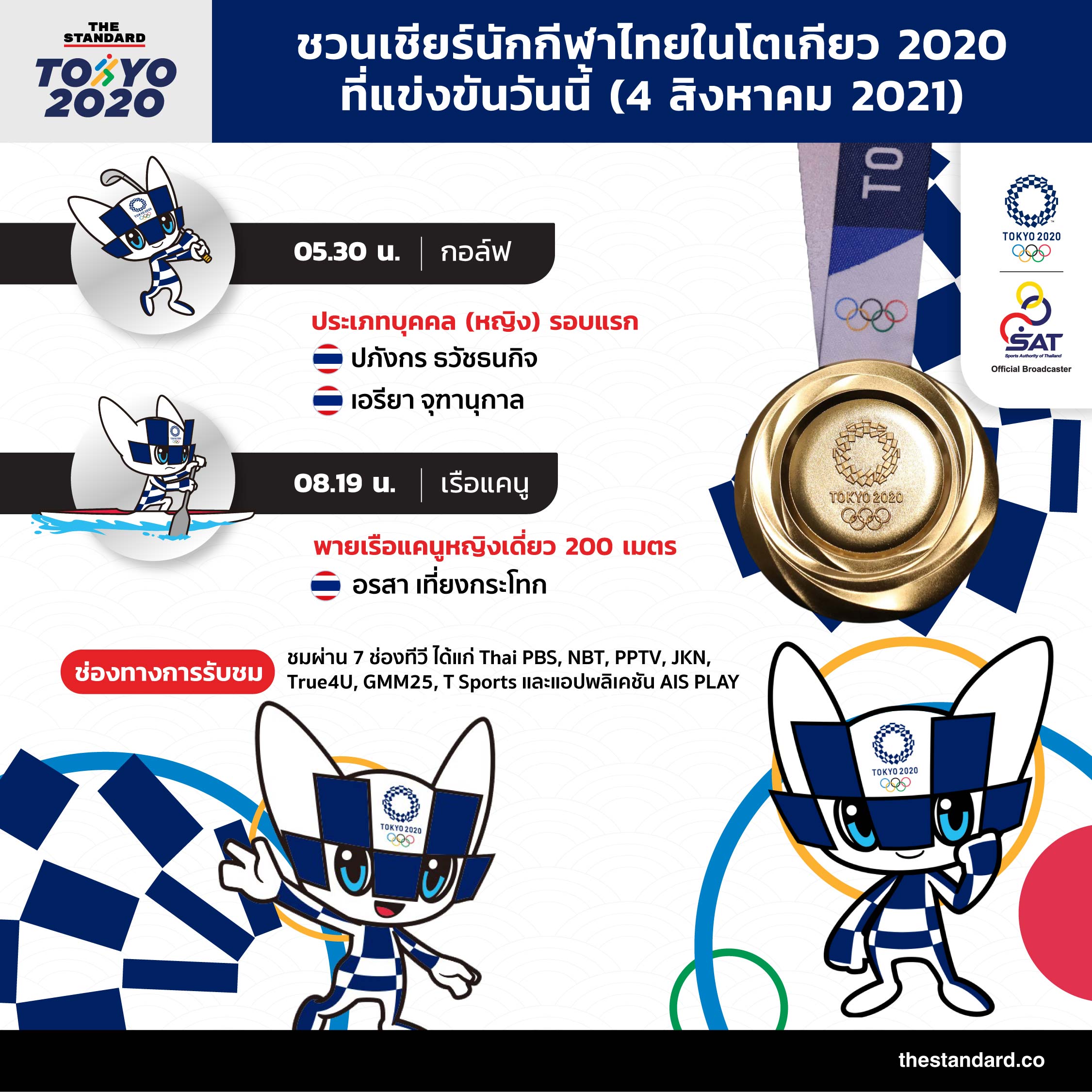 เช็กโปรแกรมการแข่งขันก่อนช่วยกันเชียร์นักกีฬาไทยในกีฬาโตเกียว 2020 ประจำวันที่ 4 สิงหาคม 2021