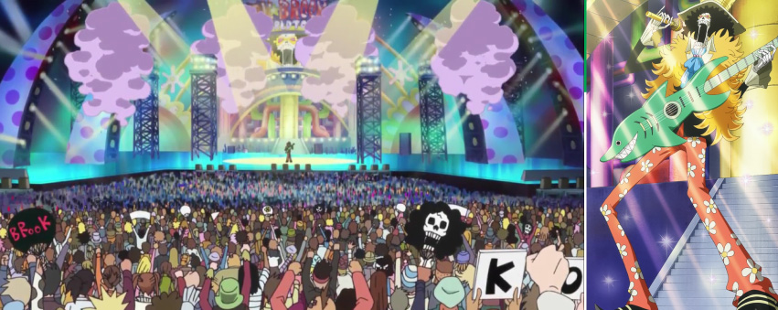 ฉากเล็กๆ ในงานคอนเสิร์ตครั้งสุดท้ายที่หมู่เกาะชาบอนดี้ เมื่อความจริงเปิดเผยว่าบรูคคือโจรสลัด ถูกรัฐบาลมองว่าเป็น ‘อาชญากร’ ที่ต้องตรวจสอบและจับกุม แต่ผู้คนบนเกาะก็ออกมาช่วยขัดขวางและปกป้องการแสดงบทเพลงสู่โลกใหม่ ที่เขาและเพื่อนๆ ต้องไปผจญภัยต่อสู้กับศัตรูที่เลวร้ายในอนาคต