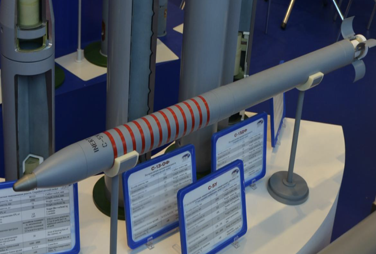 ตัวอย่างจรวด ไม่นำวิถีจากค่ายรัสเซีย และส่วนประกอบหลักของจรวดขับเชื้อเพลิงแข็ง