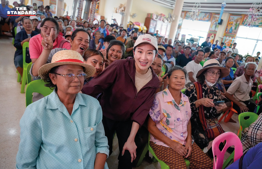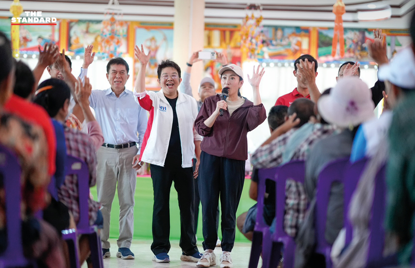 จากนั้นหัวหน้าพรรคเพื่อไทยพร้อมคณะ เดินเท้าต่อไปยังศาลาการเปรียญ วัดศรีสะอาด เพื่อพบกับพี่น้องประชาชนร่วมร้อยที่มารอต้อนรับและพูดคุยกับอดีตนายกรัฐมนตรี