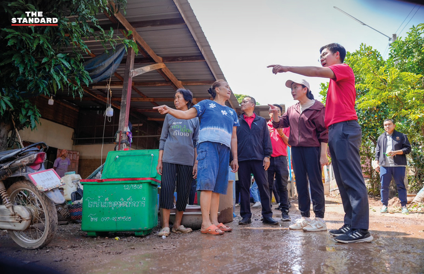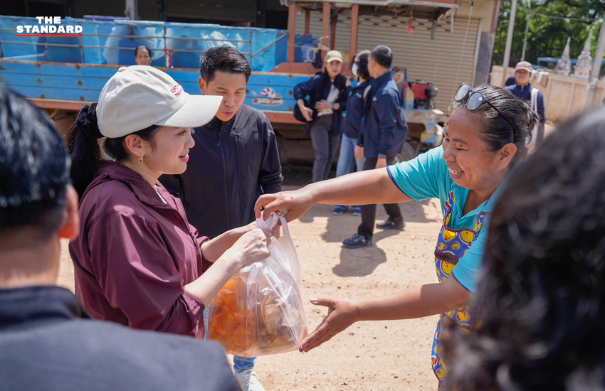 จากนั้นหัวหน้าพรรคเพื่อไทยพร้อมคณะ ร่วมกันส่งมอบถุงยังชีพให้พี่น้องประชาชน พูดคุยถามไถ่สารทุกข์สุกดิบ และร่วมถ่ายภาพเป็นที่ระลึกท่ามกลางบรรยากาศอบอุ่นเต็มไปด้วยกำลังใจ