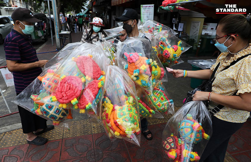 ขณะที่ลอยกระทงปีนี้ถือเป็นการกลับมาจัดงานได้หนแรก หลังประกาศเปิดประเทศ พบว่าบรรยากาศที่ปากคลองตลาดเงียบเหงามาก ภาพรวมส่วนใหญ่มีประชาชนมาเลือกซื้อวัตถุดิบไปประกอบกระทงเพื่อนำไปขายต่อ บางส่วนมาซื้อกระทงแบบสำเร็จรูป บางส่วนมาซื้อแบบที่ทำสำเร็จแล้วจากวัสดุธรรมชาติ ส่วนกระทรงโฟมยังมีขายบ้างแต่น้อยมาก