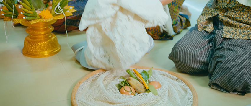 ‘ขวัญเจ้าเอยขวัญมาใยหนอล่องลอยหลุดไป อยู่ที่ไหนช่วยบอกได้ไหมใจ ใยถึงไม่คืนกลับมา ฝากไว้ให้เธอนานแล้วไม่เจอ วอนช่วยพากลับมา’
