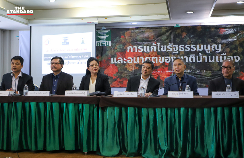 วันนี้ (13 พฤศจิกายน) ในงานเสวนา ‘บทบาทรัฐสภาในการโหวตแก้รัฐธรรมนูญ 7 ญัตติ กับจุดเปลี่ยนประเทศไทย’ ที่สมาคมนักข่าวนักหนังสือพิมพ์แห่งประเทศไทย อภิสิทธิ์ เวชชาชีวะ อดีตนายกรัฐมนตรี และอดีตหัวหน้าพรรคประชาธิปัตย์ กล่าวบนเวทีเสวนายอมรับว่า เป็นห่วงสถานการณ์ทางการเมืองที่เกิดขึ้น ซึ่งก่อนหน้านี้เห็นว่า มี 3 ทางออกต่อปัญหาดังกล่าวที่สามารถปล่อยไปตามสถานการณ์ โดยไม่มีการหันหน้าเข้าหากันได้ แต่ก็อาจเกิดความรุนแรงจนต้องปะทะกันหรือจะต้องหาพื้นที่ที่ทำให้คู่ขัดแย้งมาพูดคุยเพื่อคลี่คลายสถานการณ์ให้ได้ หรือเอาตัวรอดไปตามสถานการณ์ แต่มั่นใจว่าในวันที่ 17-18 พฤศจิกายนนี้จะเป็นคำตอบที่หากรัฐสภาปฏิเสธการแก้ไขรัฐธรรมนูญ การคลี่คลายความขัดแย้งจะไม่เหลือแล้ว จึงสนับสนุนให้มีการรับหลักการร่างแก้ไขรัฐธรรมนูญ 7 ฉบับทั้งหมด เพราะการแก้ไขในมาตรา 256 เพื่อตั้งสภาร่างรัฐธรรมนูญ (สสร.) มาแก้ไขรัฐธรรมนูญใหม่ ยังจะต้องผ่านการออกเสียงประชามติและไม่สามารถเป็นทางออกได้ เพราะความขัดแย้งบนท้องถนนที่ไม่มีการแก้ไขบทบัญญัติอื่นๆ ก็ยังทำให้ต้องใช้กติกาเดิม
