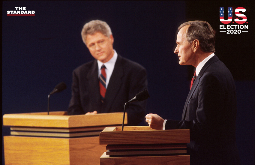 ก่อนหน้าจะมีการดีเบต คะแนนเสียงของบุชตามคลินตันอยู่พอสมควร เพราะชาวอเมริกันไม่พอใจผลงานการบริหารเศรษฐกิจที่ไม่ดีของบุช จนทำให้เกิดวิกฤตเศรษฐกิจขนาดย่อมและมีคนตกงานเป็นจำนวนมาก นอกจากนี้บุชยังมีภาพของชนชั้นนำที่สนใจแต่ผลประโยชน์ของนายทุนและชนชั้นสูงที่ไม่เข้าใจความเดือดร้อนของคนอเมริกันเดินดิน