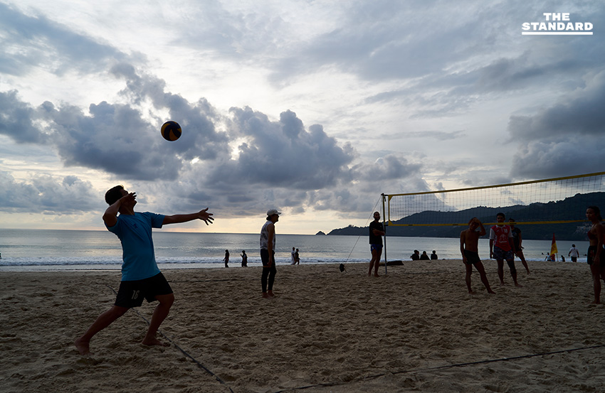แม้จะอยู่ในช่วงเย็นของวันหยุดยาว แต่หาดป่าตองในวันนี้ที่ท้องฟ้าสีครามสดใส ชายหาดสะอาด น้ำทะเลที่ใสแจ๋ว กลับมีนักท่องเที่ยวบางตา โดยส่วนใหญ่เป็นกลุ่มนักท่องเที่ยวชาวไทยที่พาสมาชิกในครอบครัวมาพักผ่อนหย่อนใจกับการเล่นน้ำ นั่งปิกนิกริมชายหาด รวมถึงหนุ่มสาวที่ใช้โอกาสนี้มาออกกำลังกายด้วยการวิ่งและเล่นวอลเลย์บอลชายหาด