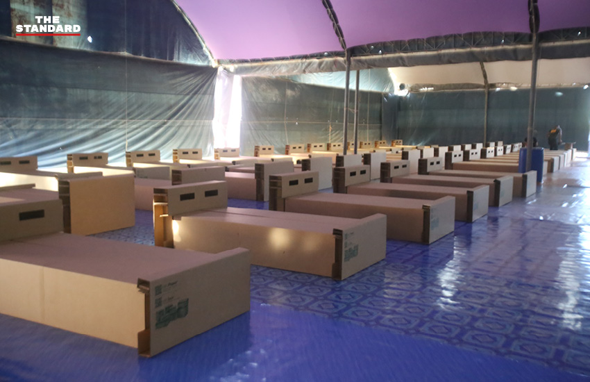 โดยในขณะนี้โรงพยาบาลสนามมีเตียงสนาม 856 เตียง ถ้าบวกกับเตียงกระดาษที่กำลังติดตั้งในวันนี้ก็จะมีเตียงสนามเพิ่มเป็น 1,200 เตียง และจะต้องมีการเพิ่ม และขยายโรงพยาบาลสนามอีก โดยมีเป้าหมายในการสร้างโรงพยาบาลสนามทั้งสิ้น 2,000 เตียง