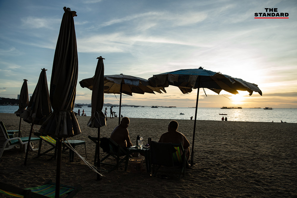 ทีมงาน THE STANDARD พาชมบรรยากาศเมืองยอดฮิตของคนกรุงและต่างชาติอย่างพัทยา ช่วงเย็นวันศุกร์ (12 มิถุนายน) ไปจนถึงพลบค่ำ ในภาพที่แปลกไปเพราะจำนวนนักท่องเที่ยวที่บางตา และส่วนใหญ่เป็นชาวไทยที่สวมหน้ากากมาเที่ยว ขณะที่ชาวต่างชาติเป็นคนที่พำนักอยู่ในประเทศไทยอยู่แล้ว