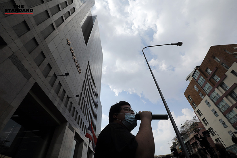 แต่พริษฐ์ยังคงปราศรัยต่อ โดยกล่าวว่า อาคารศรีจุลทรัพย์ แม้ไม่ใช่หน่วยงานราชการ แต่เป็นที่ทำการใหญ่ของบริษัท สยามไบโอไซเอนซ์ จำกัด ซึ่งกำลังเป็นประเด็นเกี่ยวกับวัคซีนขณะนี้ วันนี้ตนอาสาขอเป็นตัวแทนของประชาชน นำคำถามมาถามถึงที่ทำการใหญ่ของบริษัท