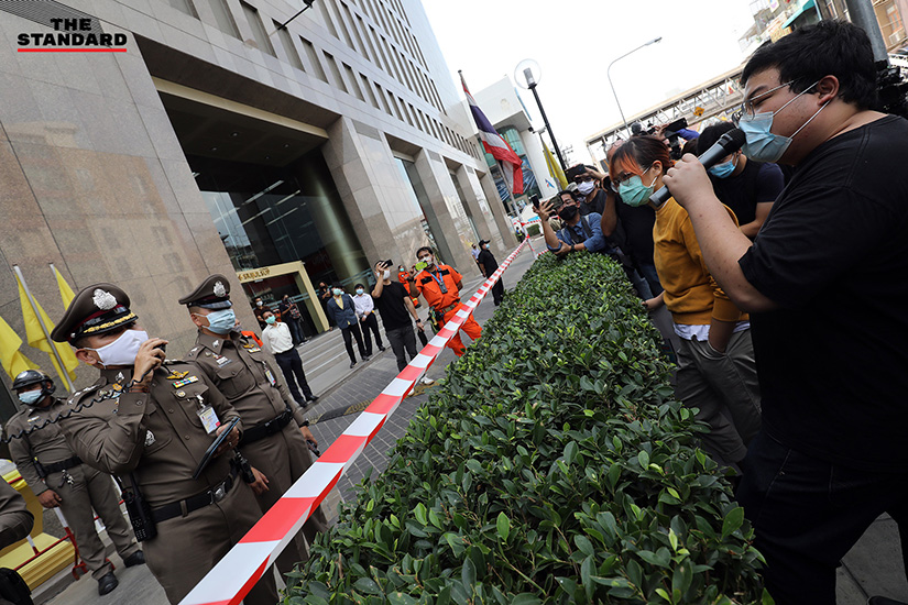 วันนี้ (25 มกราคม) เพนกวิน-พริษฐ์ ชิวารักษ์ และ เบนจา อะปัญ นัดหมายทำกิจกรรมหน้าอาคารศรีจุลทรัพย์ บริเวณถนนพระราม 1 ซึ่งเป็นที่ทำการของบริษัท สยามไบโอไซเอนซ์ จำกัด ในเวลา 13.00 น. โดยก่อนเวลานัดหมาย ทางอาคารได้นำแผงกั้น สายคาด และป้ายข้อความที่ระบุว่า “พื้นที่ส่วนบุคคล ห้ามทำกิจกรรมใดๆ ที่มีความเสี่ยงต่อการแพร่ระบาดของโควิด-19”