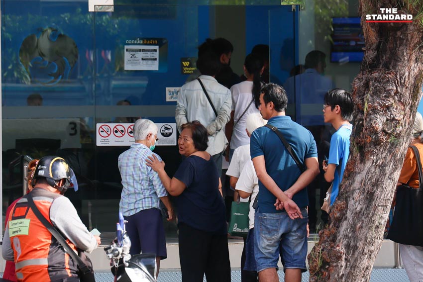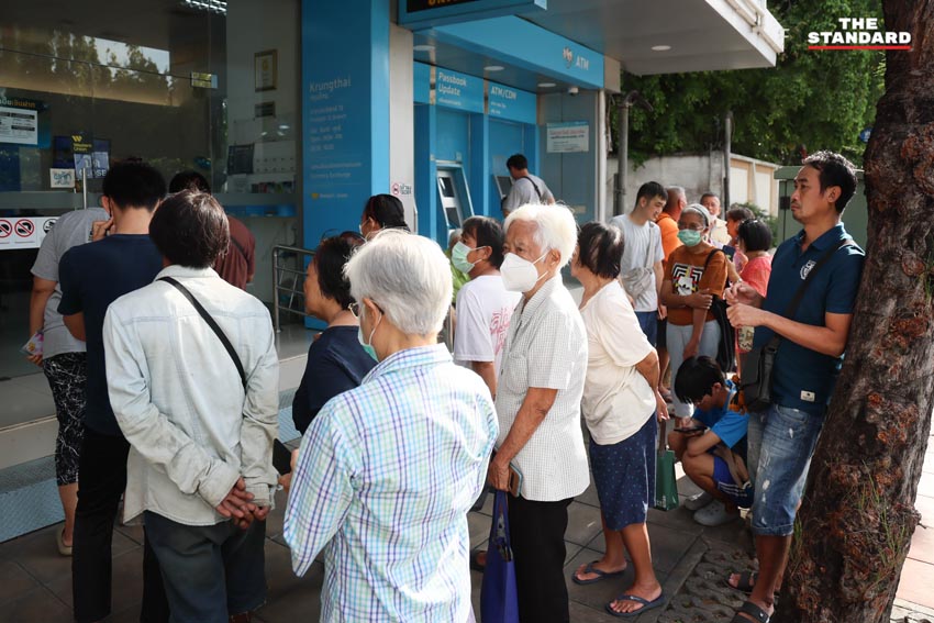วันนี้ (20 ตุลาคม) ช่างภาพข่าว THE STANDARD ลงพื้นที่สำรวจบริเวณธนาคารกรุงไทยในช่วงเช้าของวันแรกในการลงทะเบียนโครงการคนละครึ่งพลัสของรัฐบาล พบว่ามีประชาชนจำนวนมากมาเข้าแถวรอเข้าพบเจ้าหน้าที่ธนาคาร โดยสาเหตุหลักมาจากปัญหาหลากหลายอย่างในการใช้งานแอปพลิเคชัน ‘เป๋าตัง’ ซึ่งเป็นช่องทางหลักในการลงทะเบียนและรับสิทธิ์ของโครงการ