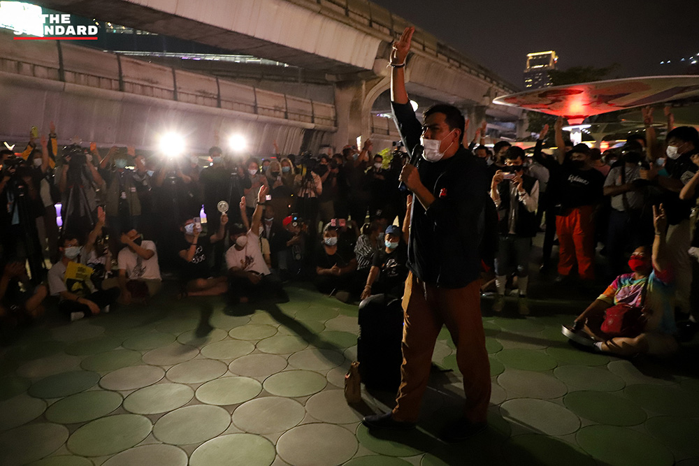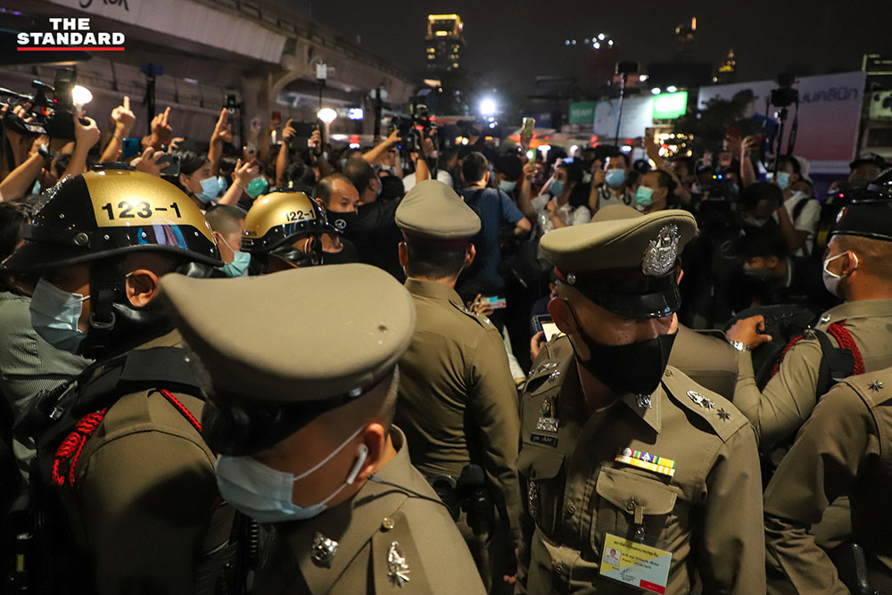 วันนี้ (9 กุมภาพันธ์) กลุ่มราษฎรนัดหมายชุมนุมที่บริเวณสกายวอล์ก แยกปทุมวัน ภายหลังจากกรณีที่ศาลอาญาไม่อนุญาตให้ปล่อยตัวชั่วคราวแกนนำราษฎร 4 ราย ประกอบด้วย อานนท์ นำภา, ปติวัฒน์ สาหร่ายแย้ม, สมยศ พฤกษาเกษมสุข และพริษฐ์ ชิวารักษ์ ที่ถูกอัยการสั่งฟ้องในความผิดตามข้อหาประมวลกฎหมายอาญามาตรา 112 และมาตรา 116 รวมถึงความผิดอื่นๆ ที่เกี่ยวกับการชุมนุม ซึ่งในเวลาต่อมาแกนนำทั้ง 4 รายถูกนำตัวไปยังเรือนจำพิเศษกรุงเทพมหานคร