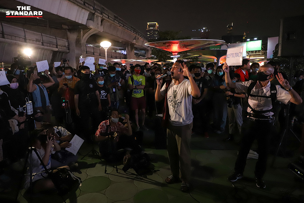 ในเวลาประมาณ 18.00 น. กลุ่มราษฎรนัดหมายรวมพลที่แยกปทุมวันบริเวณสกายวอล์ก โดยมีมวลชนทยอยเดินทางเข้าร่วม และมีแกนนำราษฎรร่วมปราศรัยถึงกรณีที่เกิดขึ้นในวันนี้