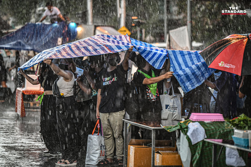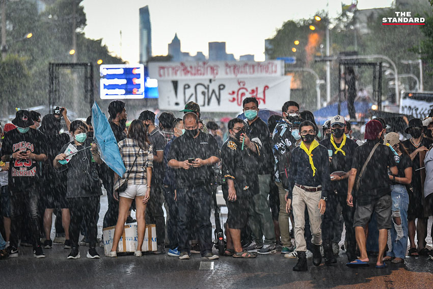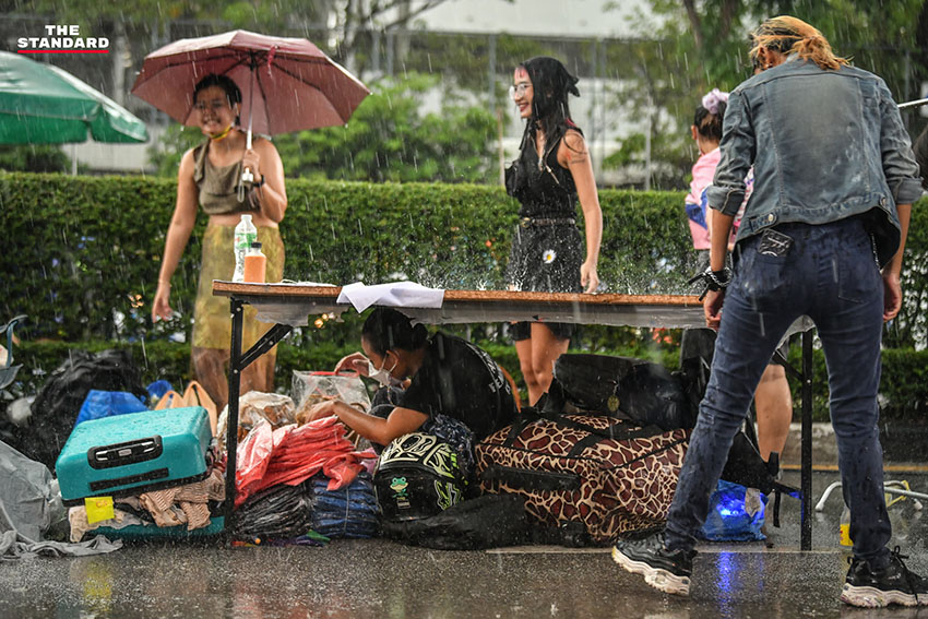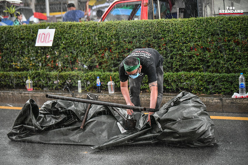 ต่อมาเมื่อกลุ่มผู้ชุมนุมได้เดินทางมาถึงถนนพิษณุโลก บริเวณหน้าทำเนียบรัฐบาลที่มีการปิดถนนให้ผู้ประกอบการร้านต่างๆ มาเปิดแผงขายสินค้า แม้ว่าระหว่างการชุมนุมฝนได้ตกลงมาอย่างหนักเป็นเวลาราว 1 ชั่วโมง แต่หลังจากฝนหยุดตก ก็ได้มีการจัดกิจกรรมต่อตามกำหนดการ