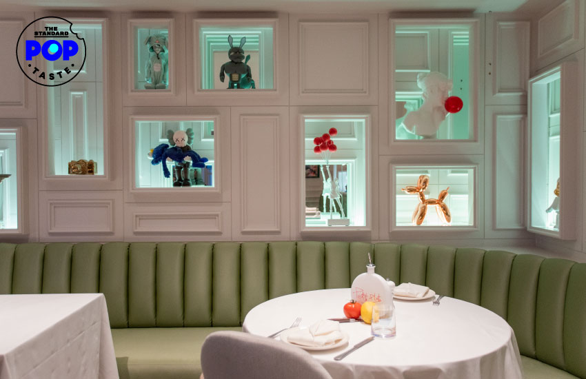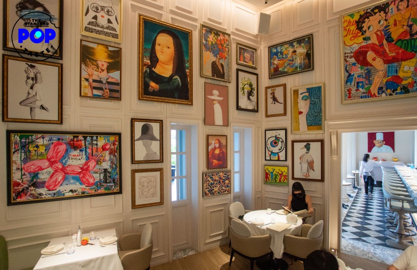 จากประโยค “La vie est une combinaison de nourriture et d’art” ชีวิตคนเราคือการผสมผสานระหว่างอาหารและงานศิลปะ ทำให้ในร้านมีภาพและงานศิลปะประดับไว้มากมายเต็มผนัง ไม่ว่าจะเป็นภาพเขียน ฟิกเกอร์ ประติมากรรม ทั้งภาพโมนา ลิซา ในสไตล์อวบอ้วนที่เป็นเอกลักษณ์ของ Fernando Botero ที่ดูเหมือนภาพวาดล้อเลียนในยุคสมัยนี้ แต่รู้หรือไม่ว่าภาพนี้ถูกวาดขึ้นในปี 1977 นานกว่าที่คิดใช่ไหมล่ะ หรือฟิกเกอร์เจ้า Skully ของ KAWS ศิลปินขวัญใจสายสตรีทอาร์ต