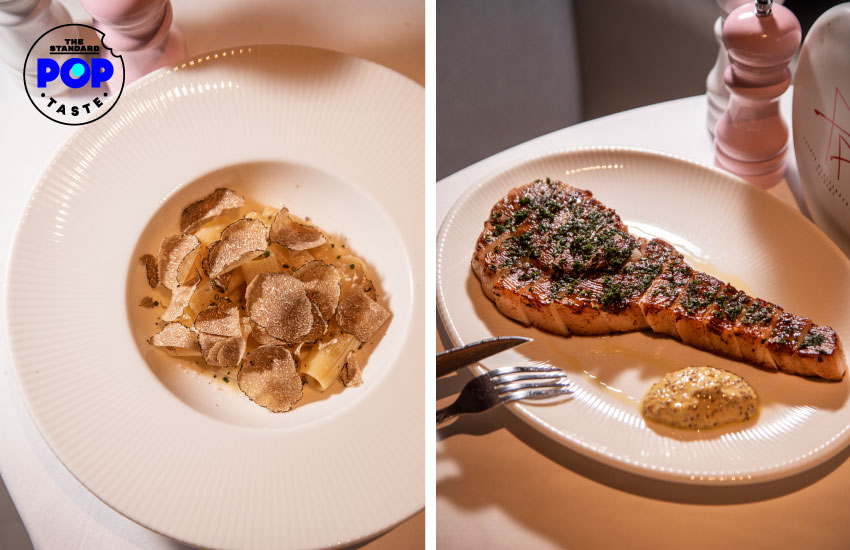 Truffle Rigatoni Pasta (690 บาท) และ Grilled Pork Chop (690 บาท)