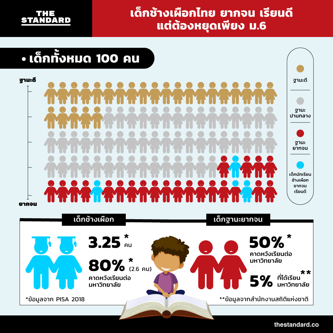 แต่ที่ผ่านมาพบว่า เด็กที่มีฐานะยากจนมีโอกาสที่จะได้เรียนต่อในระดับสูงกว่าระดับชั้น ม.6 น้อยมาก คือแค่ 5% เท่านั้น