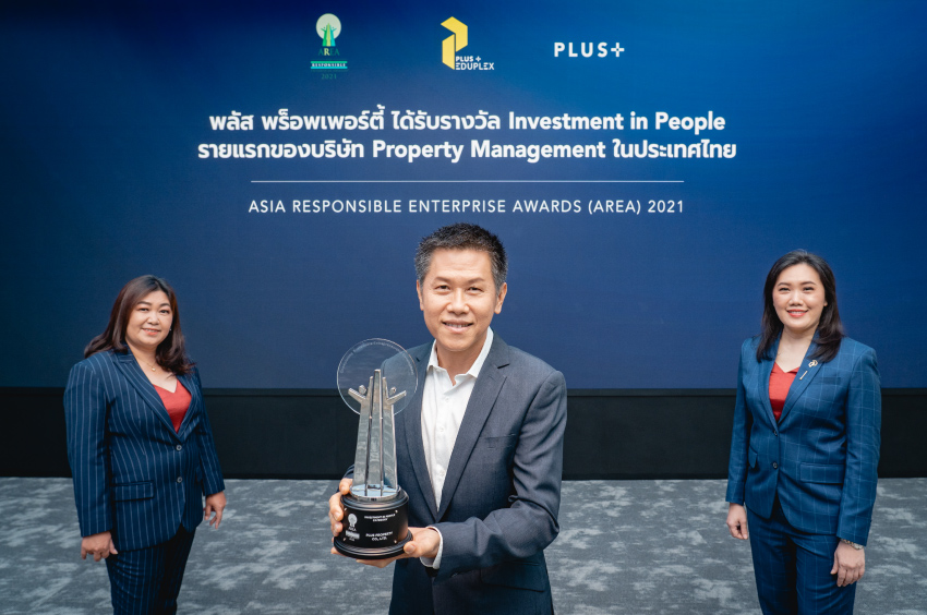 จากความสำเร็จนี่เอง ทำให้ Plus Property ได้รับรางวัลชนะเลิศระดับสากล Asia Responsible Enterprise Awards (AREA) 2021 ในสาขา Investment in People ด้านการพัฒนาทรัพยากรบุคคล จากโครงการนักจัดการสิ่งแวดล้อมฝึกหัด เป็นหลักสูตรความร่วมมือระหว่างบริษัท พลัส พร็อพเพอร์ตี้ จำกัด กับ คณะสิ่งแวดล้อม มหาวิทยาลัยเกษตรศาสตร์ พัฒนาหลักสูตรการดูแลสิ่งแวดล้อมในโครงการที่พักอาศัยอย่างยั่งยืนในทุกมิติ ทั้งด้านคุณภาพอากาศ เสียง ความสั่นสะเทือน ระบบน้ำ การจัดการของเสียและแยกขยะ พื้นที่สีเขียว ด้านระบบนิเวศวิทยา รวมทั้งกฎหมายสิ่งแวดล้อมที่เกี่ยวกับอาคาร นับเป็นบริษัทที่ทำธุรกิจด้านบริหารจัดการโครงการอสังหาริมทรัพย์ (Property Management) ของไทยรายแรก และรายเดียวที่ได้รับรางวัลนี้