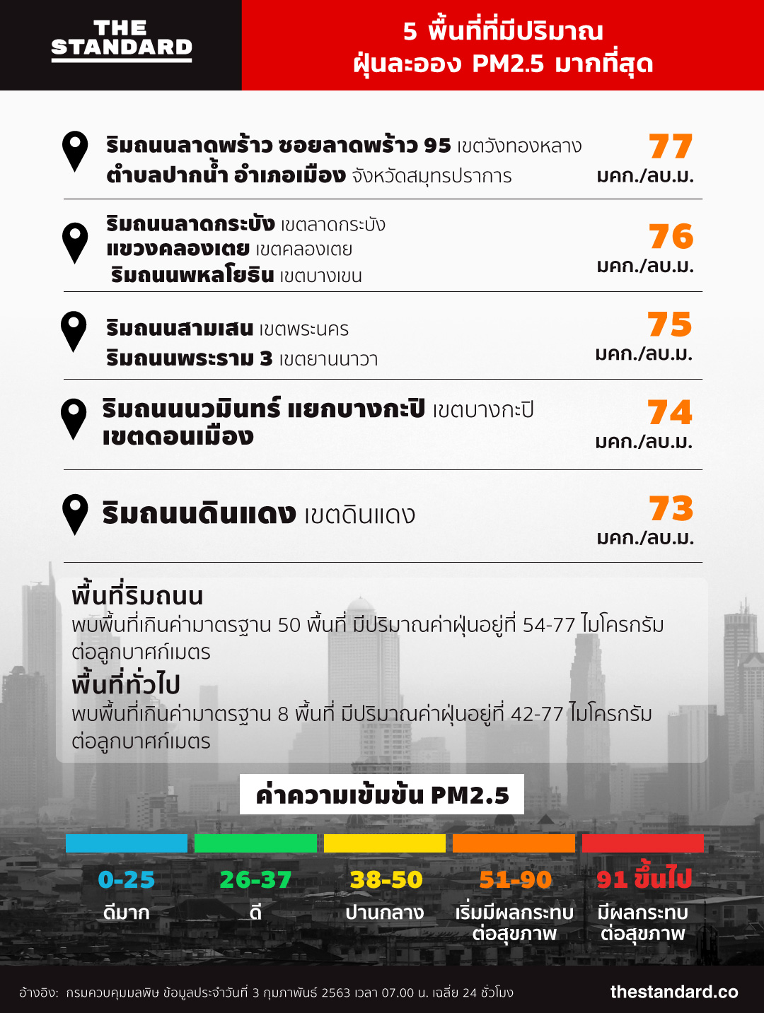 อย่างไรก็ตาม ตอนนี้มลพิษทางอากาศอย่างฝุ่น PM2.5 เริ่มกลับมาอยู่ในเกณฑ์ที่สูงเพิ่มขึ้น ดังนั้นทุกครั้งที่ต้องออกไปทำธุระหรือกิจกรรมกลางแจ้ง ประชาชนควรสวมหน้ากากอนามัยไว้เสมอ เพื่อป้องกันฝุ่นในเบื้องต้น