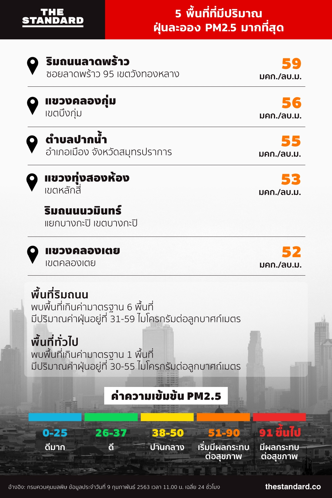 ค่าฝุ่น PM2.5 วันนี้ (9 กุมภาพันธ์ 2563)