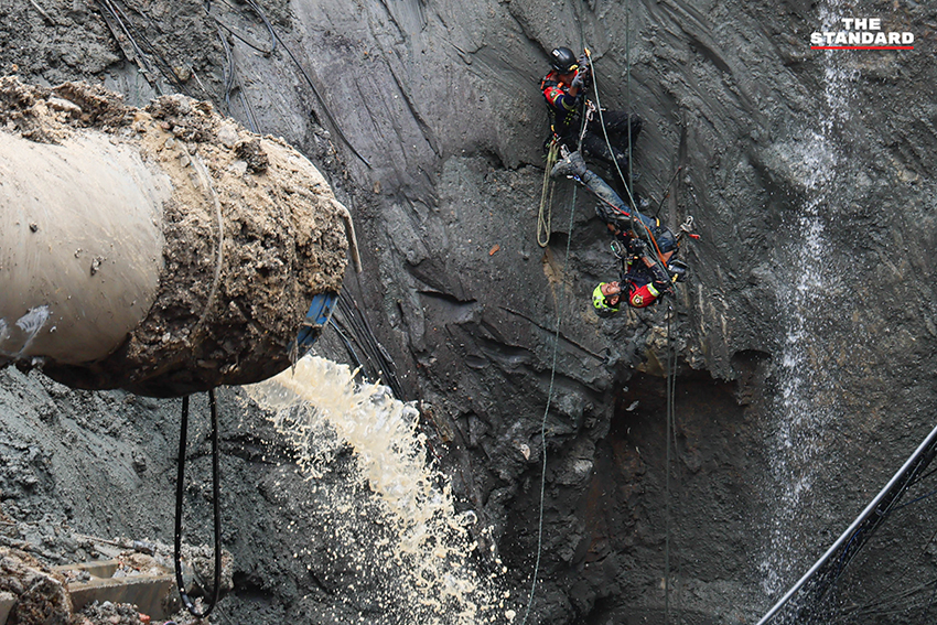 ด้านชัชชาติ สิทธิพันธุ์ ผู้ว่าราชการกรุงเทพมหานคร ได้สั่งการให้เจ้าหน้าที่เข้าตัดน้ำตัดไฟในพื้นที่เกิดเหตุ และให้ รฟม. อุดอุโมงค์เพื่อป้องกันดินสไลด์เพิ่มเติม พร้อมทั้งสั่งการให้ประเมินความปลอดภัยของอาคารโดยรอบในรัศมี 100 เมตร และเตรียมเครื่องดูดน้ำเพื่อรับมือหากมีฝนตกหนัก